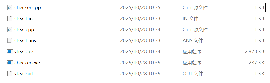 将checker.cpp也放在同一个目录下,直接编译运行就可以在控制台看到一个显而易见的比对结果。 接下来是一个模板,展示如何放置题目给的大样例文件与对拍文件。